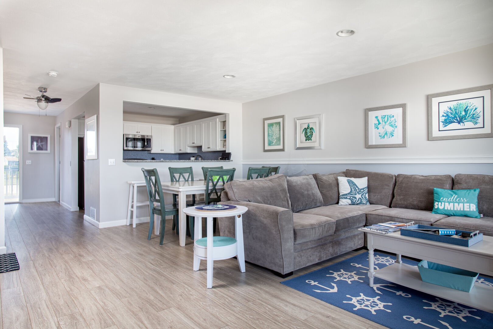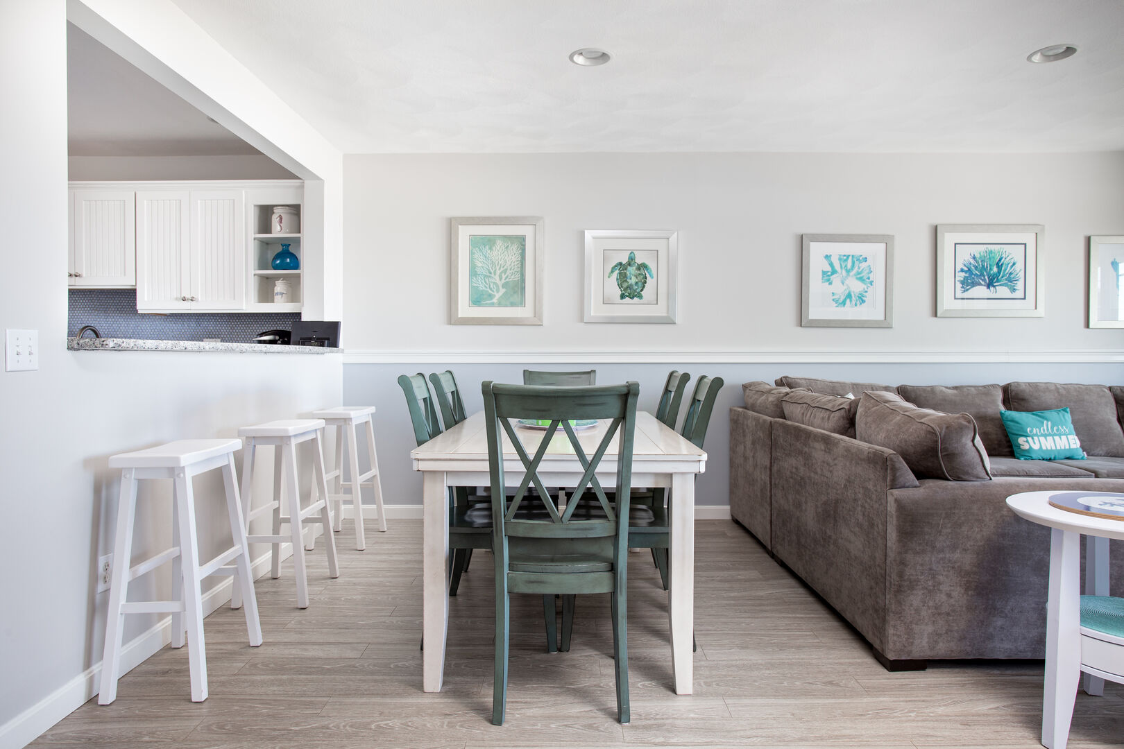 • A large open living room/dining room with plenty of seating for dining and relaxing.