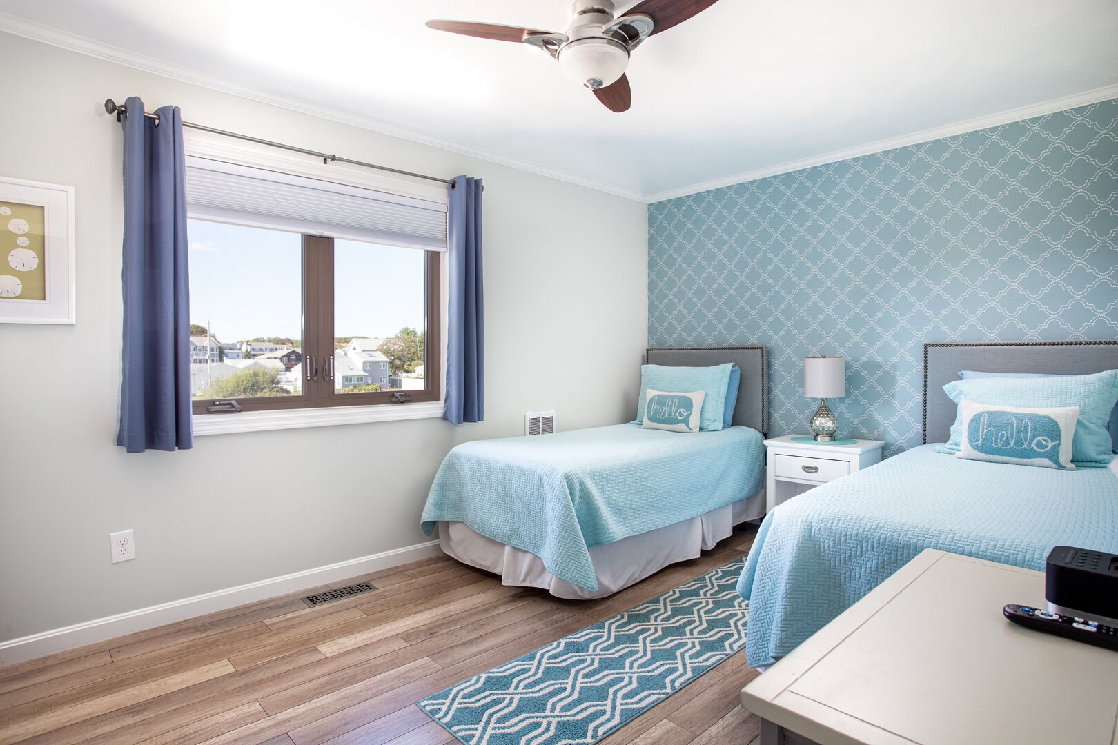 • A second bedroom with two twin beds (that can be made as a king bed), custom closet, and flat screen TV.